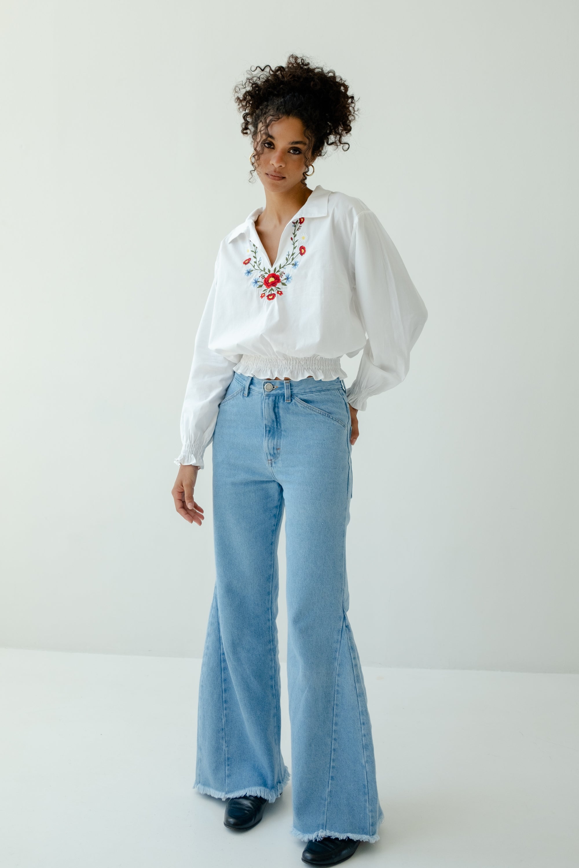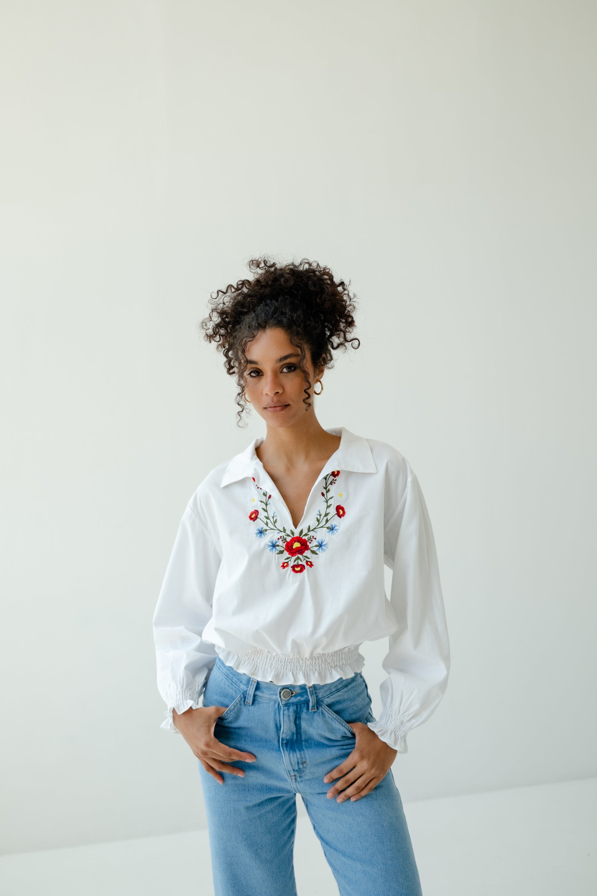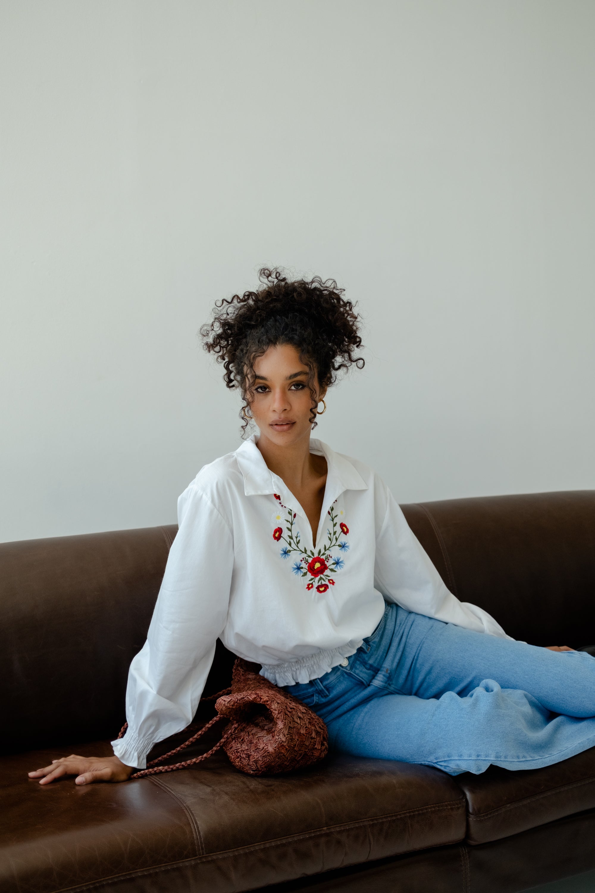 Um toque artesanal muda o look! A Bata Gabi é feita de algodão, uma modelagem inédita por aqui e um delicado bordado localizado.