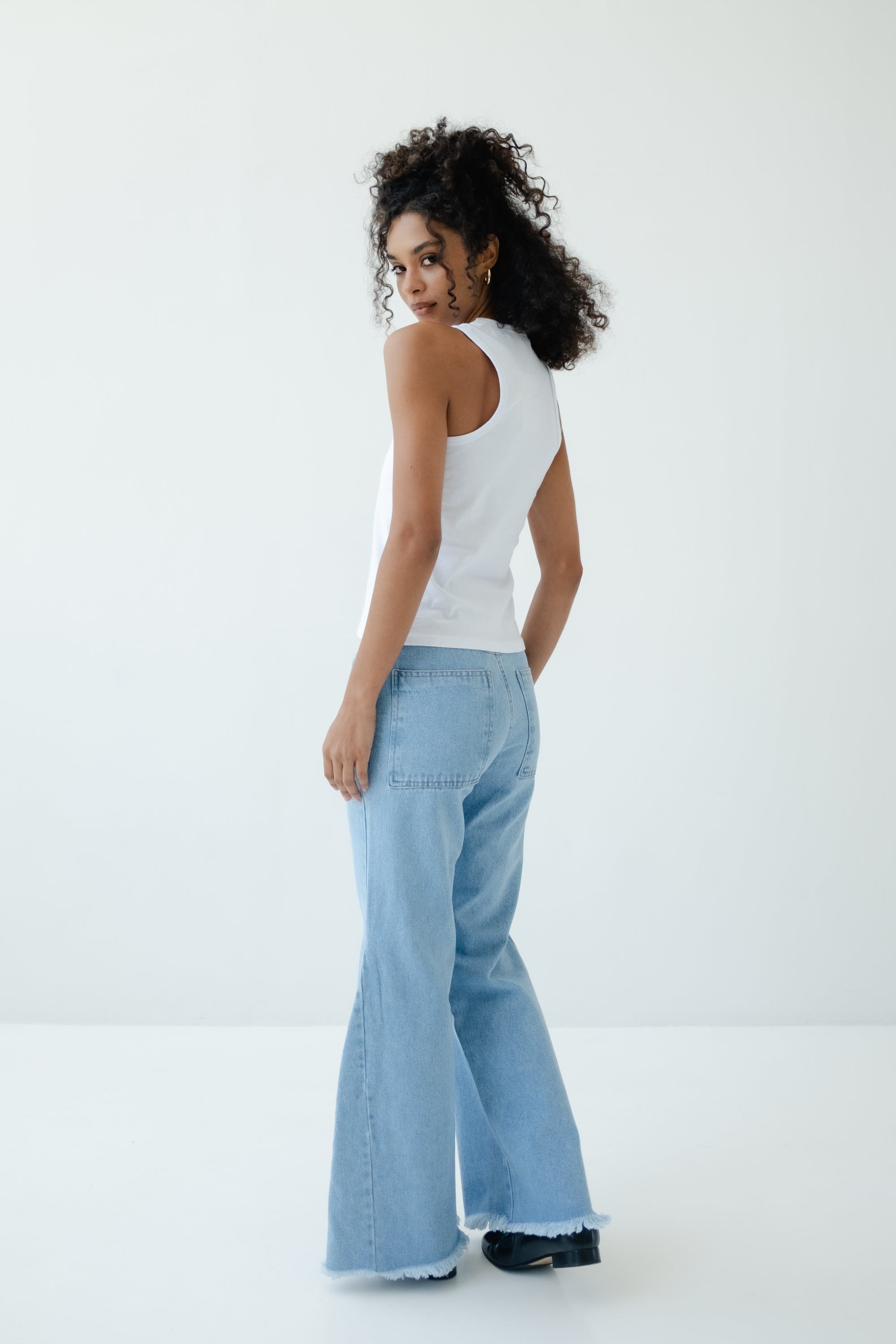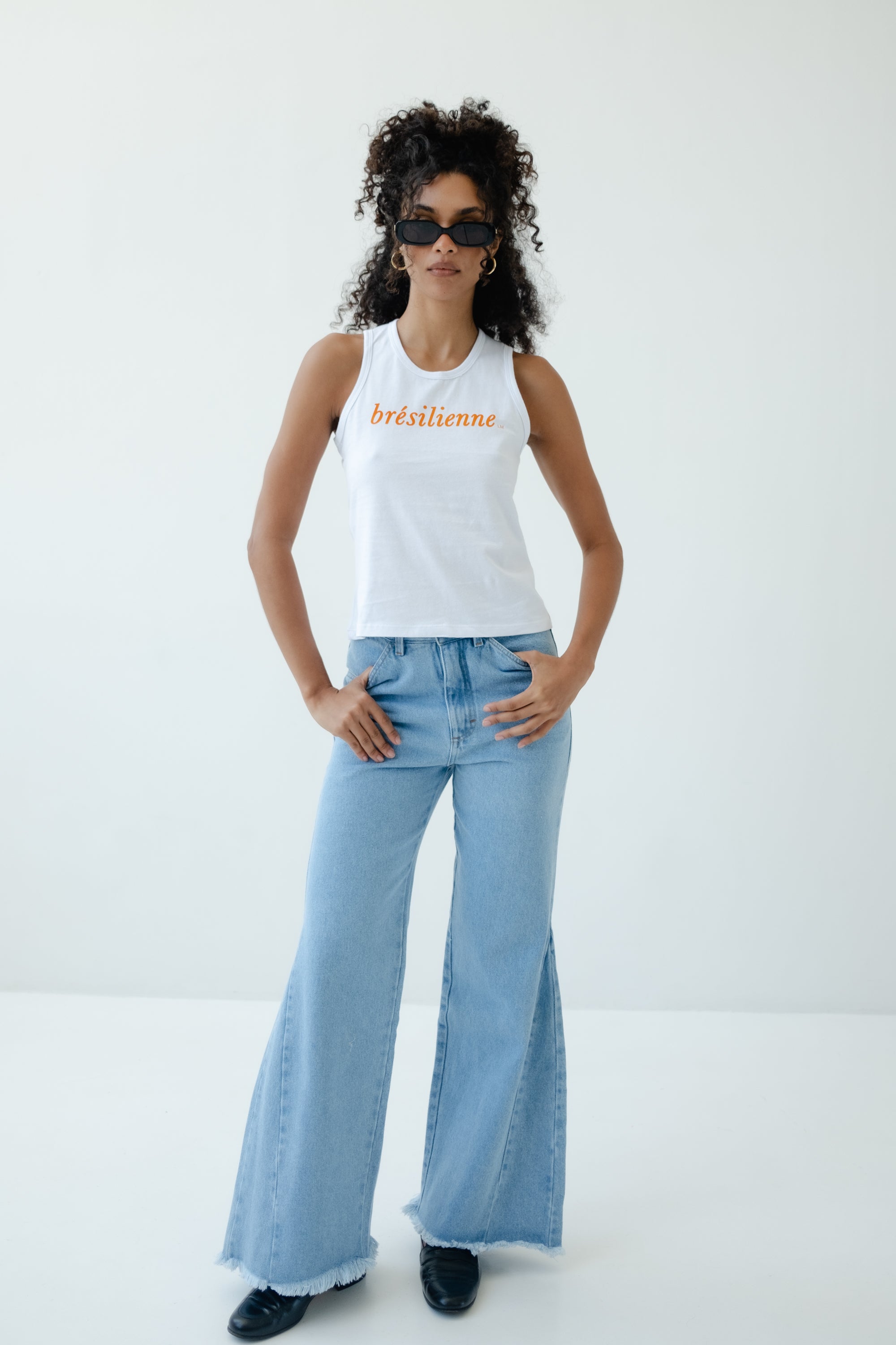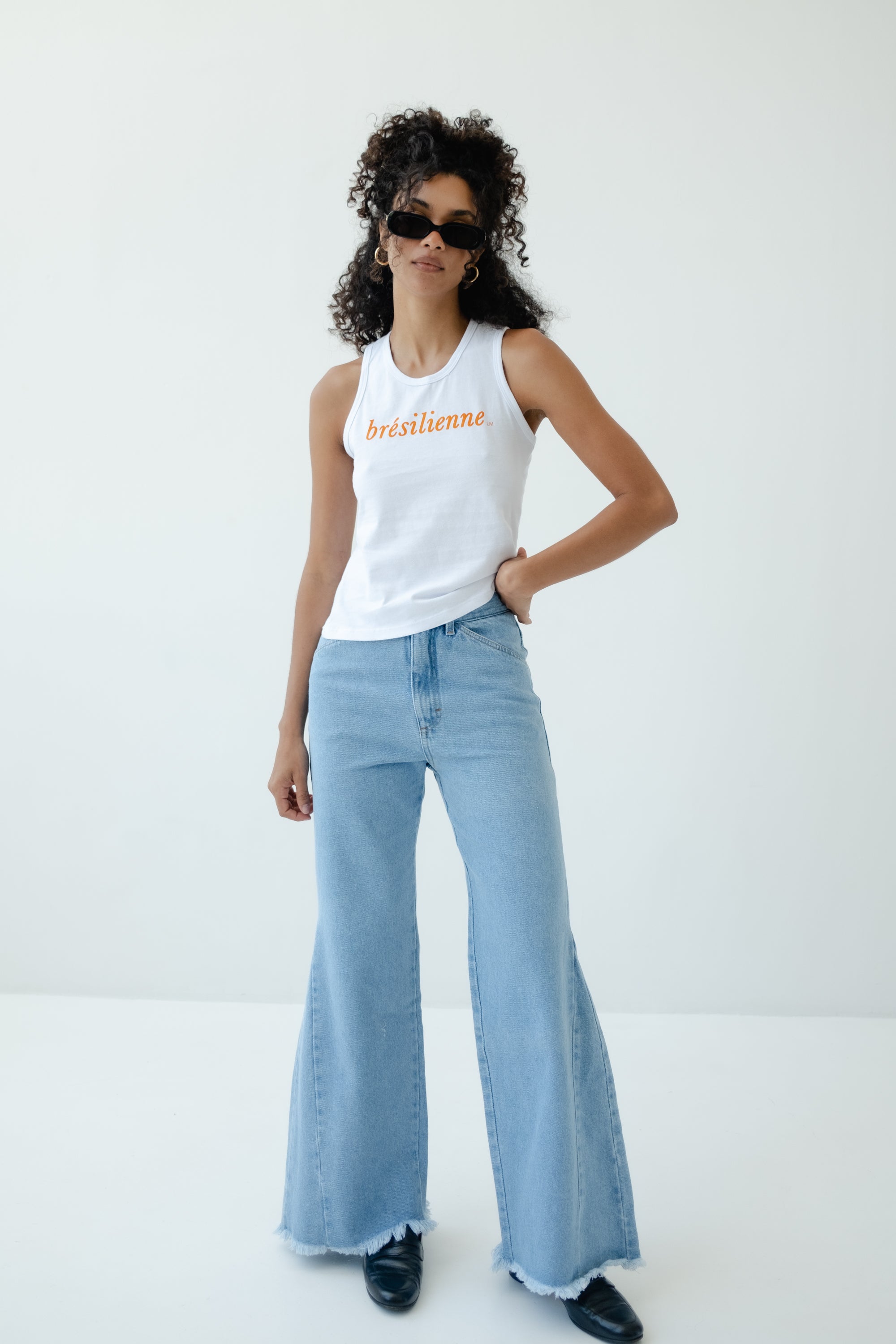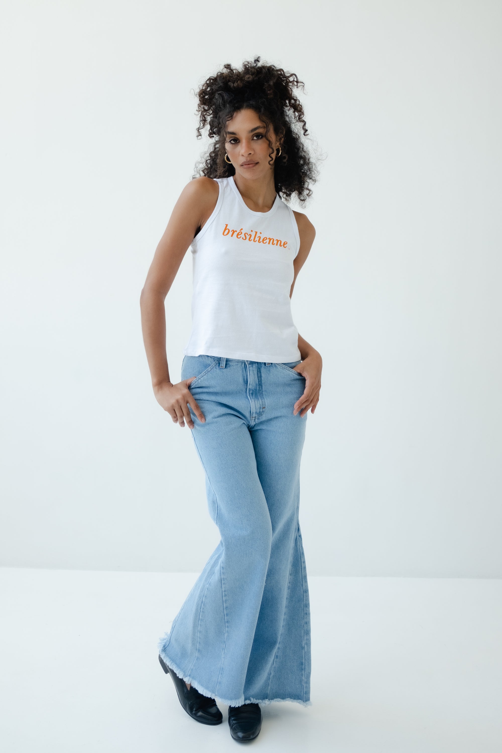 Nossos jeans são um caso sério! Nessa modelagem, trouxemos uma nova proposta: cintura mais baixa e uma perna mais ampla.