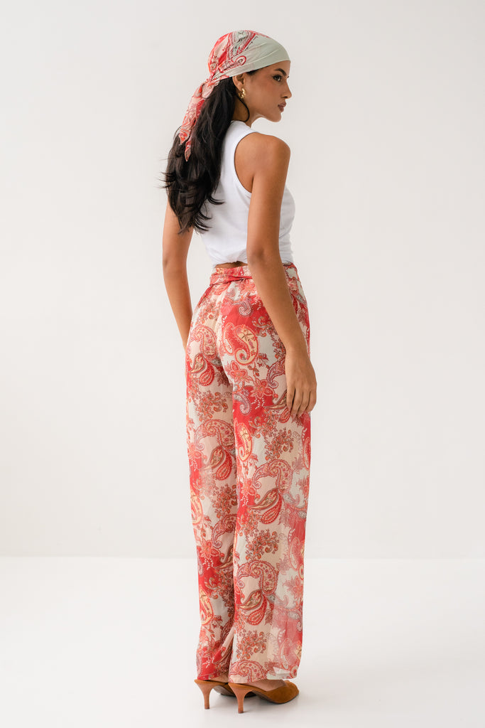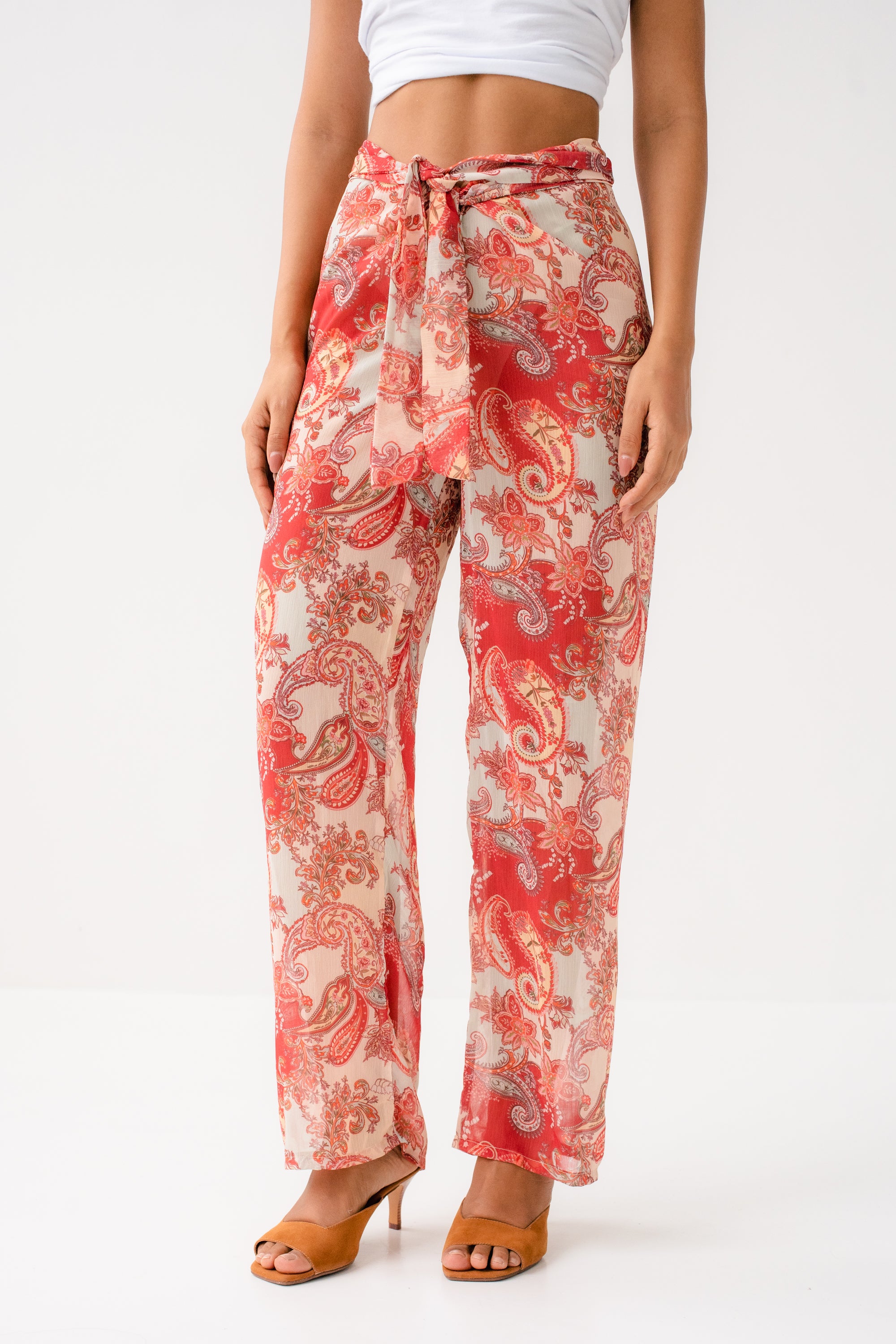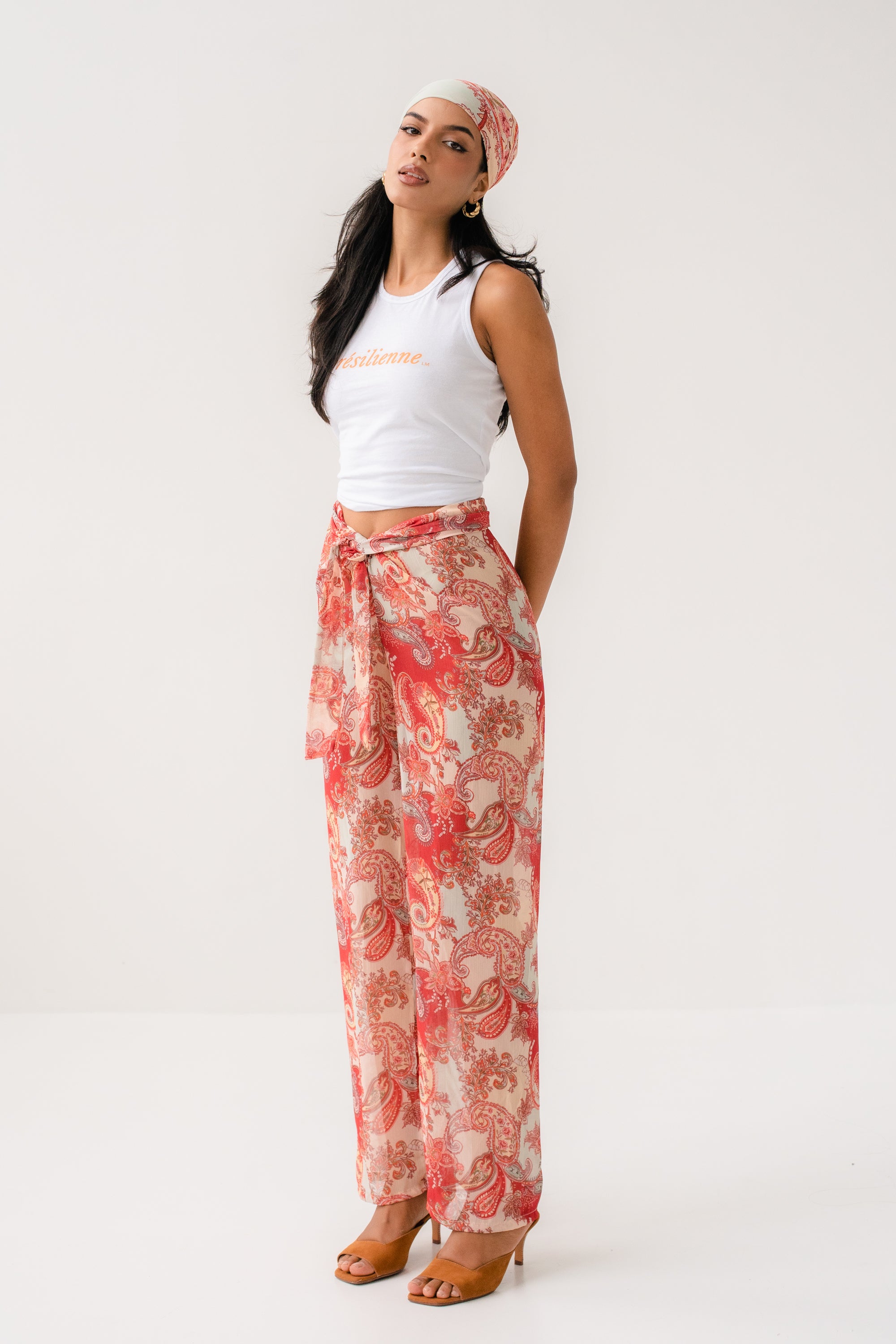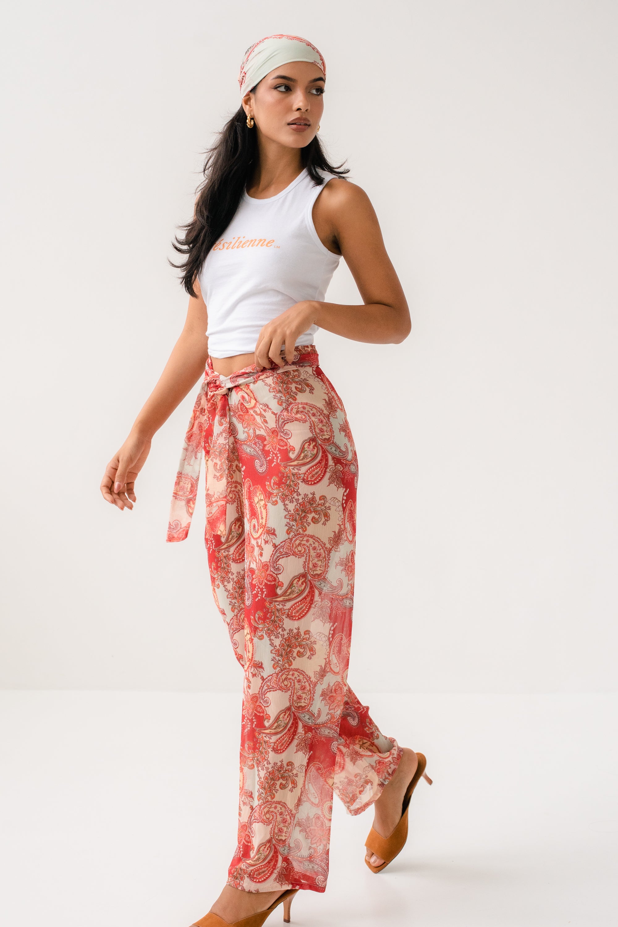 Olha que beleza! Nossa nova calça é para fazer da vida uma pista de dança. Soltinha, com o nosso exclusivo Paisley e com uma amarração frontal, para você usar e sentir a liberdade.