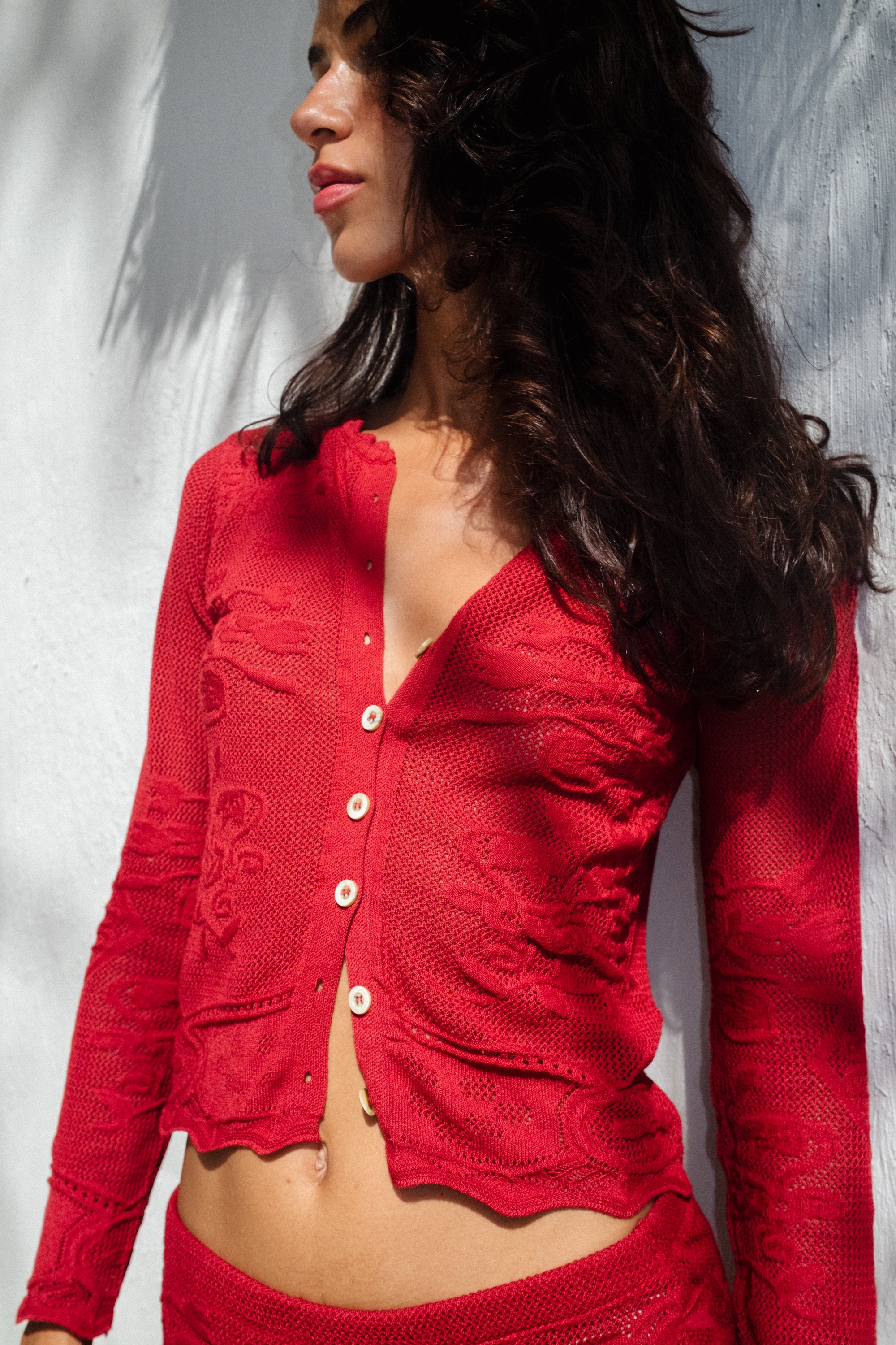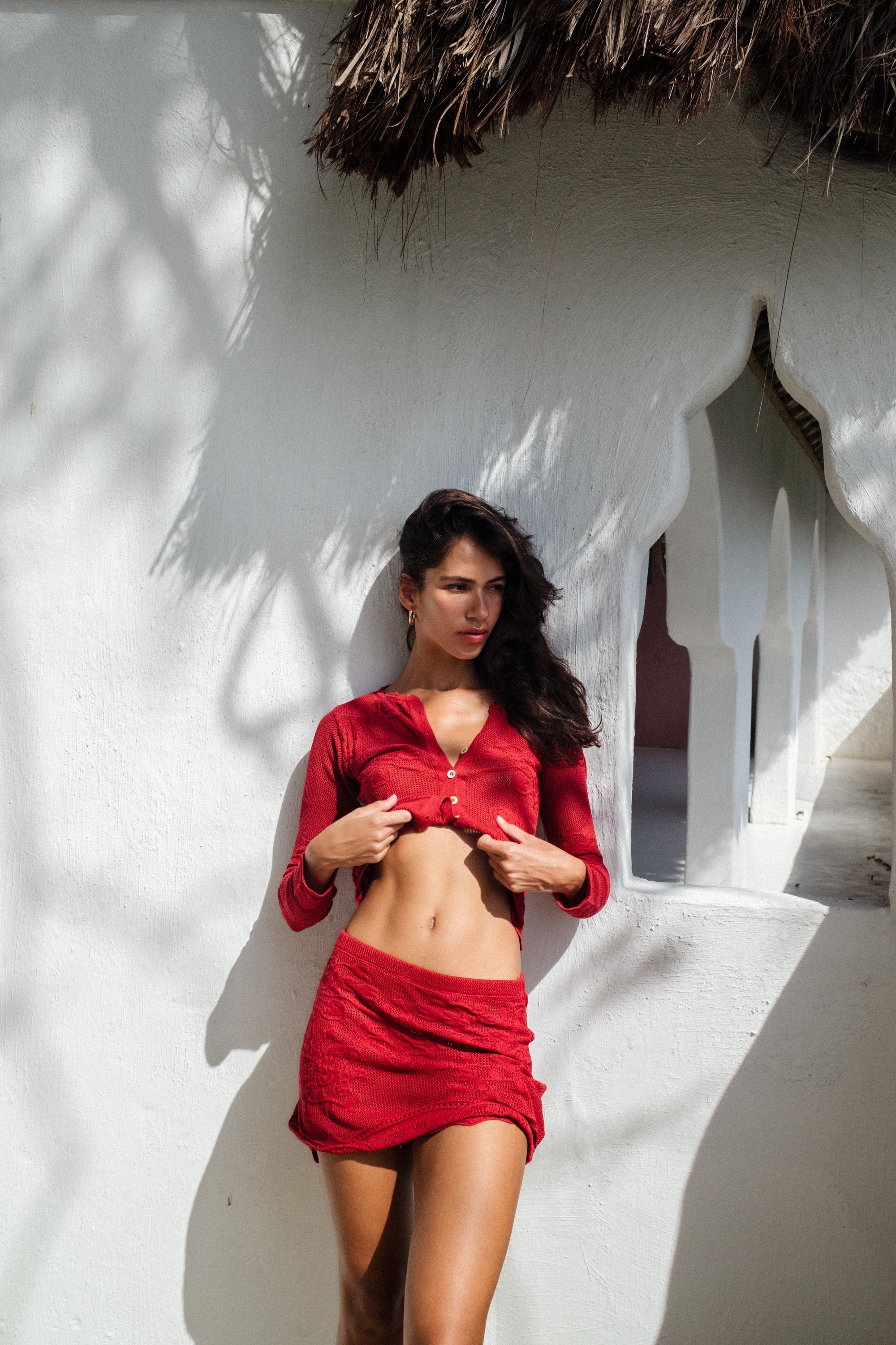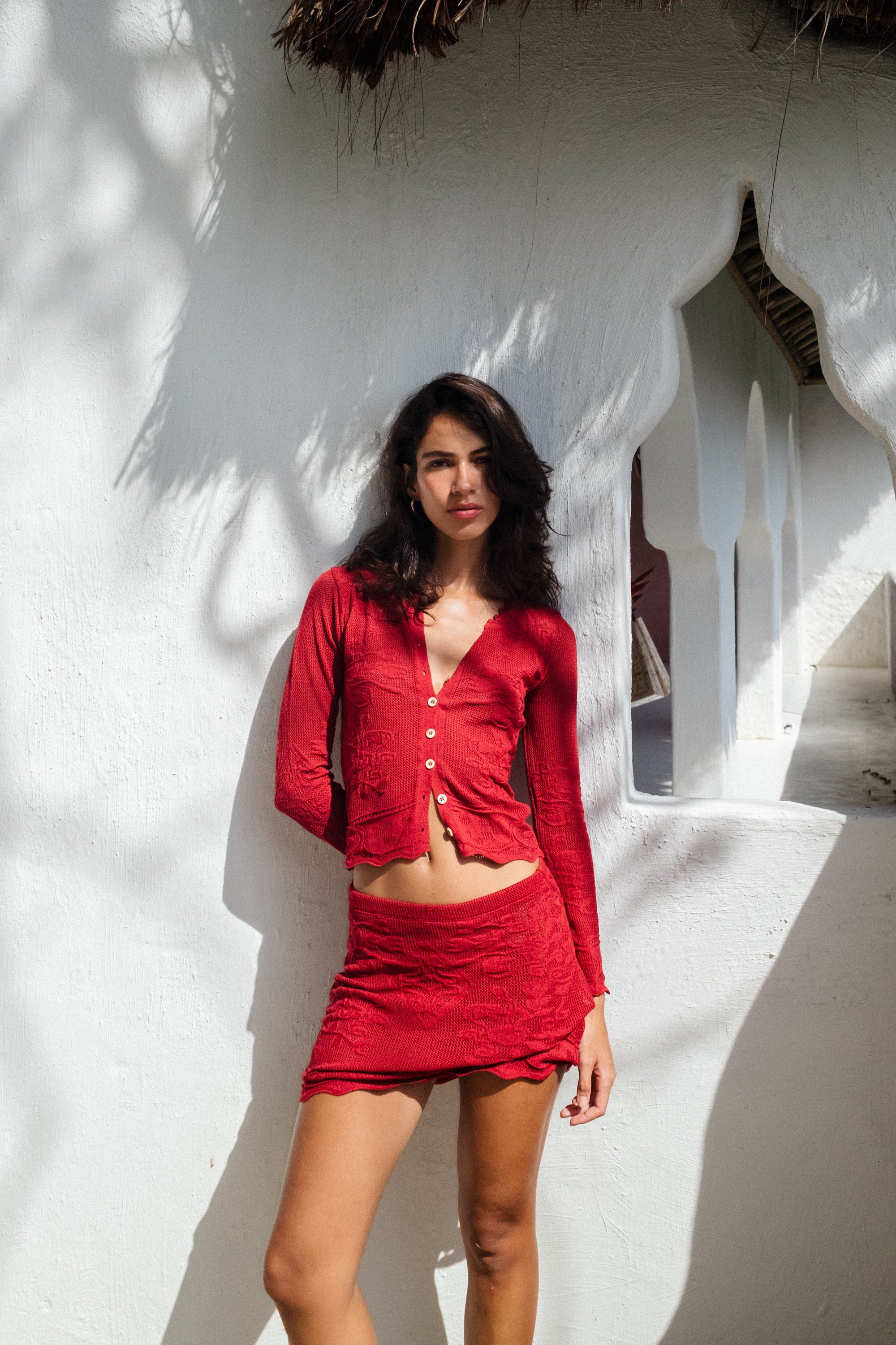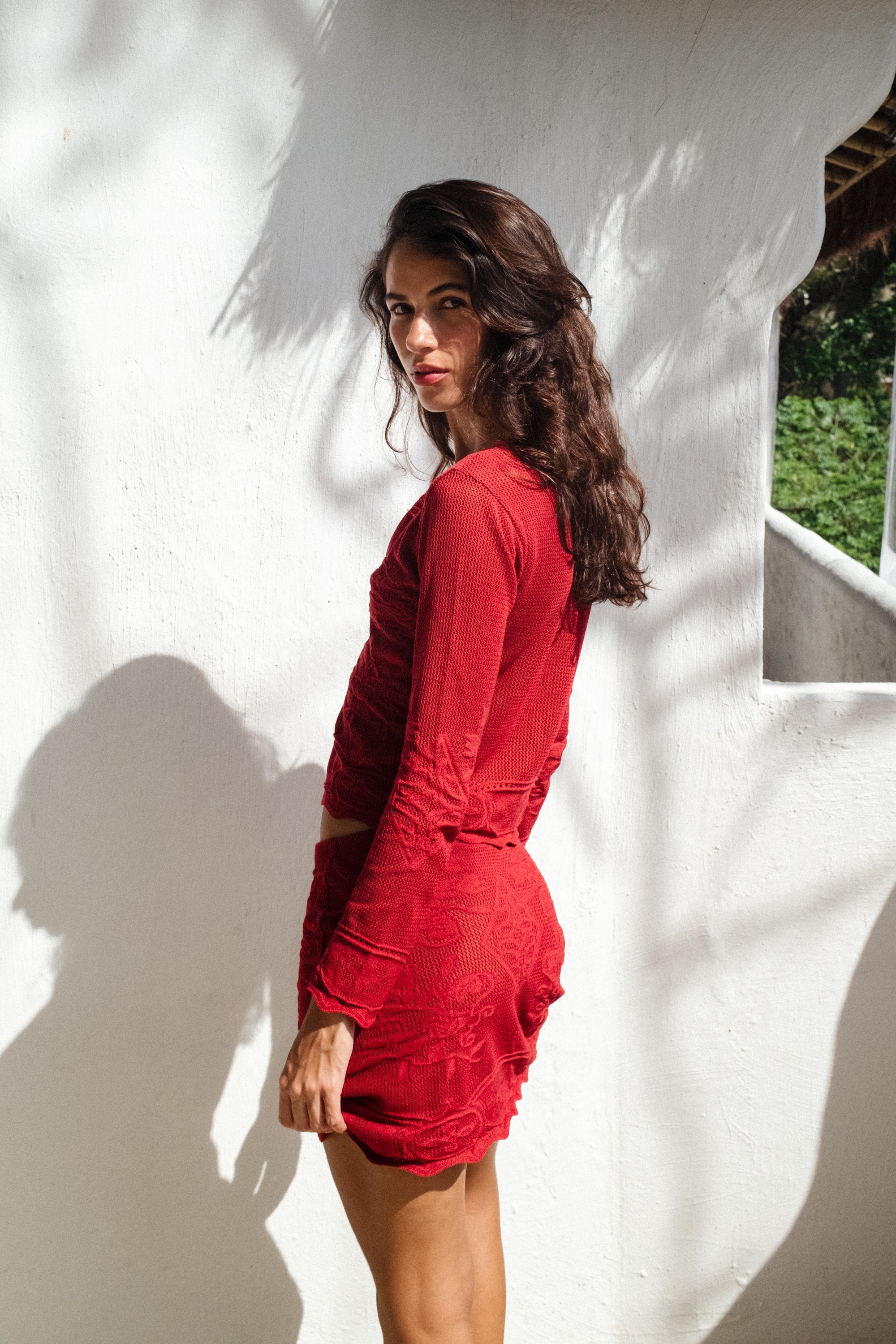 Uma obra de arte! O Conjunto Laís é feito em tricô macio, que combina textura suave com um caimento que acompanha o corpo. O casaquinho realça o seu corpo, enquanto a saia é curtinha na medida certa e de conforto absoluto. Fácil de combinar, impossível de esquecer. A gente sabe, você merecia uma versão no nosso vermelho clássico!