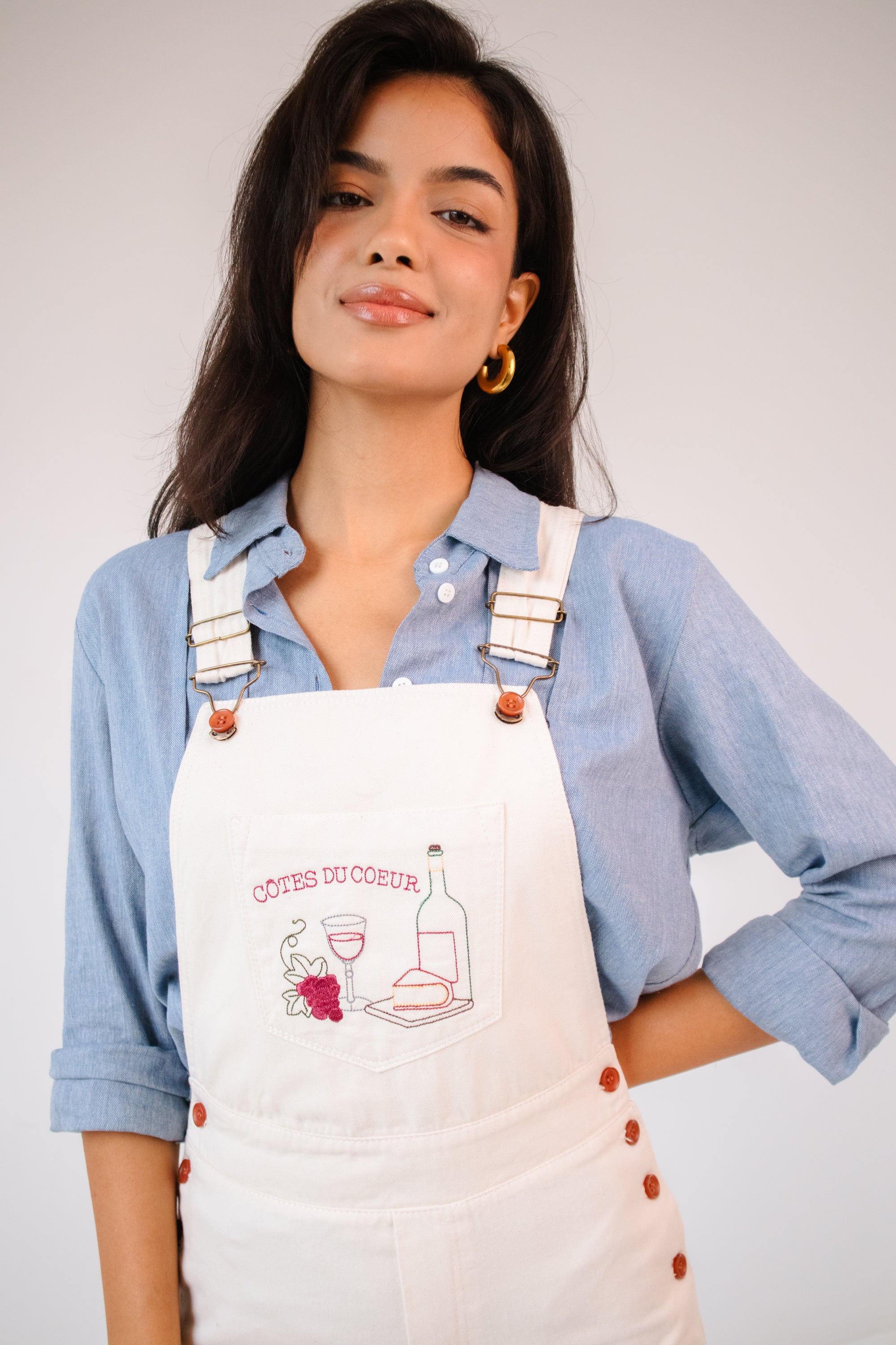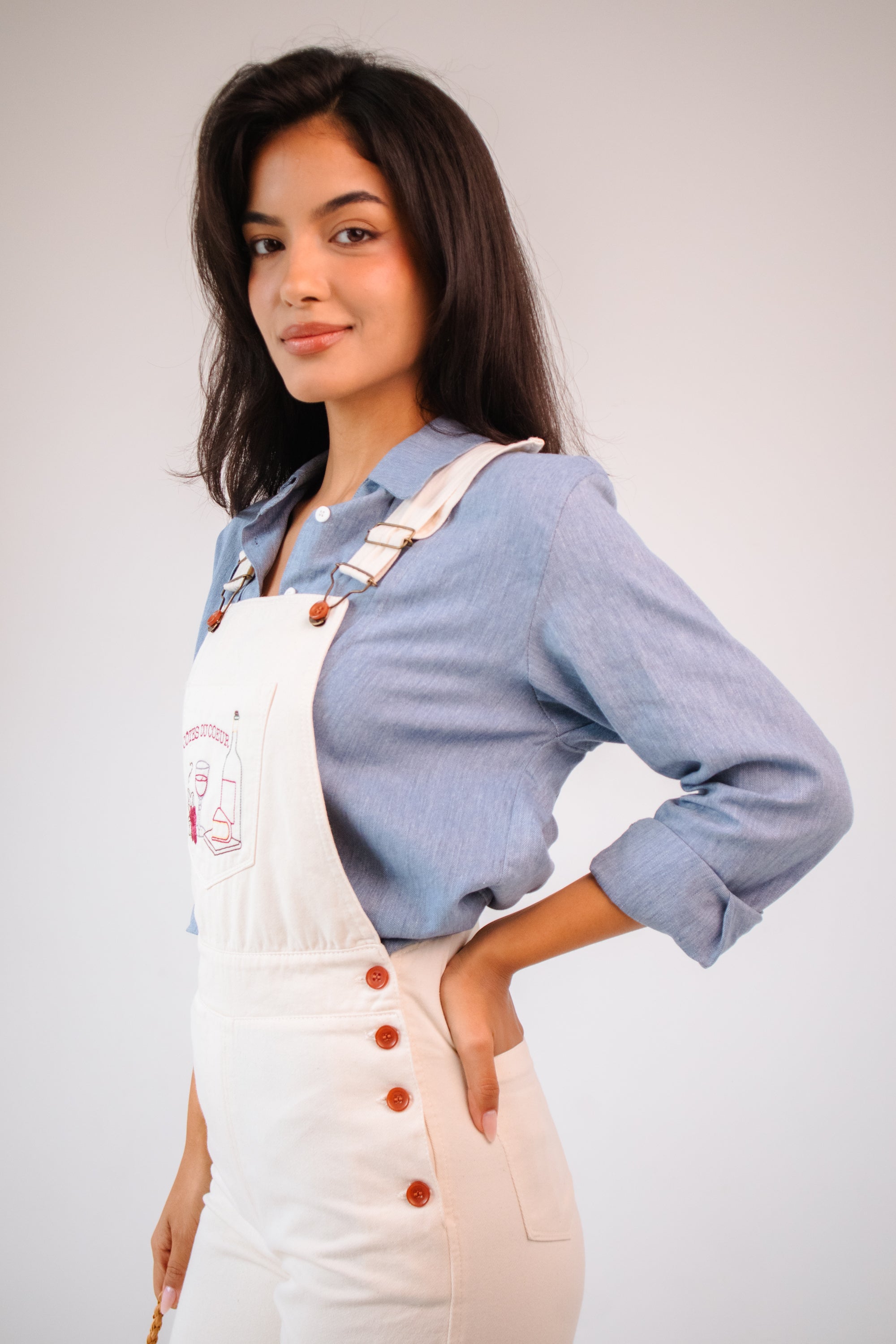 Mais uma companheira de aventuras. A nova jardineira no brim bordado e o nosso desejo de eternizar essa peça cheia de histórias para contar.