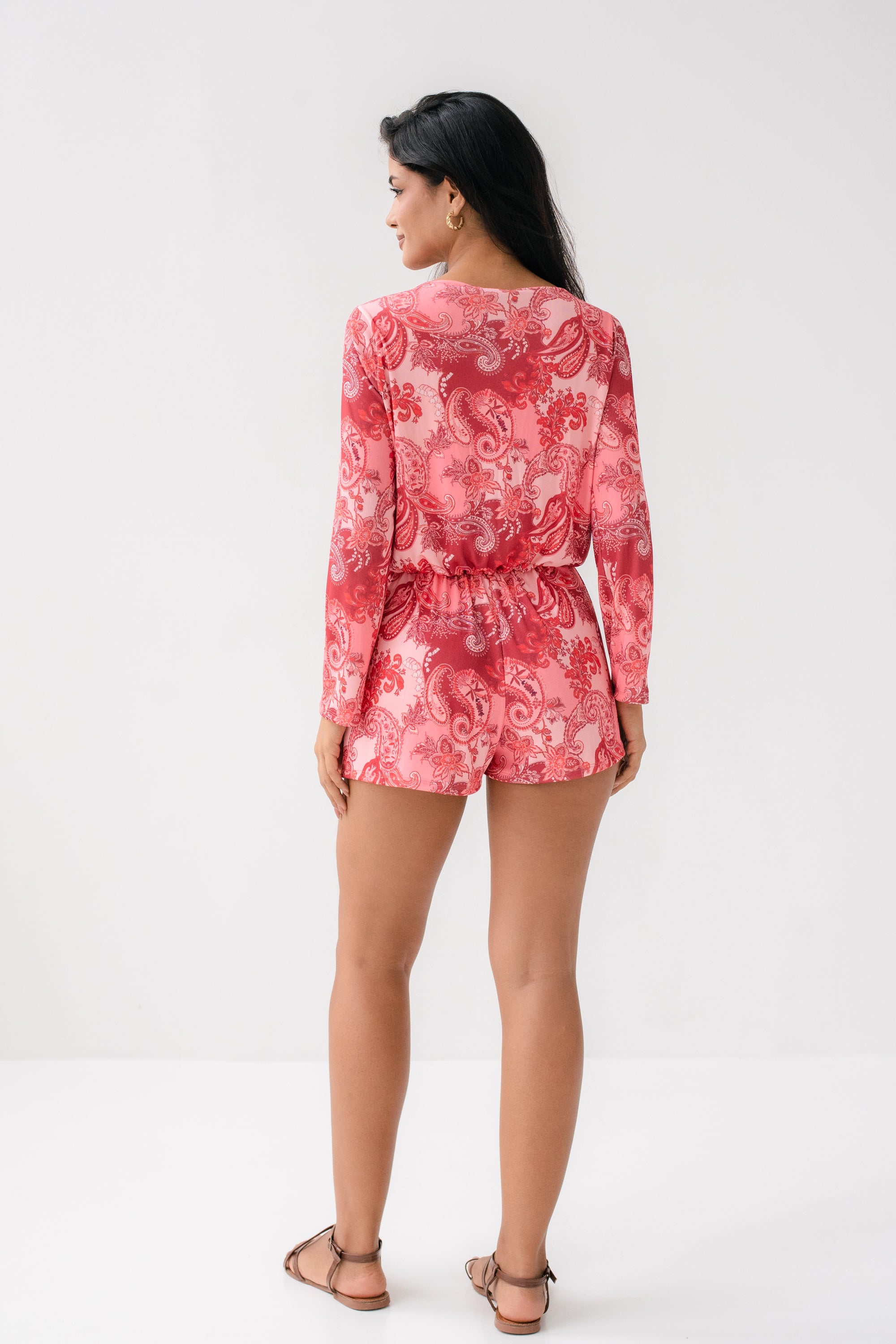 Uma coleção com paisley merecia uma novidade assim. Nosso macaquinho é cheio de leveza, combina com a estampa e o tecido gostoso! Ele é curtinho, possui um decote em V além da manga mais soltinha.